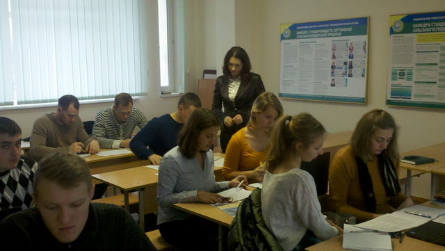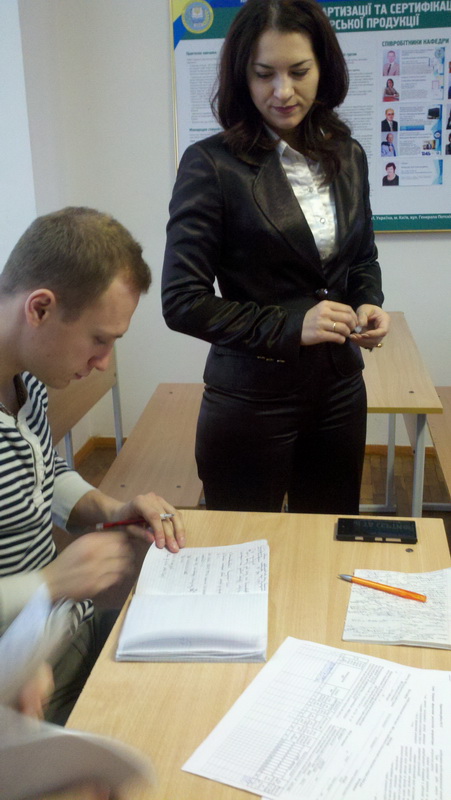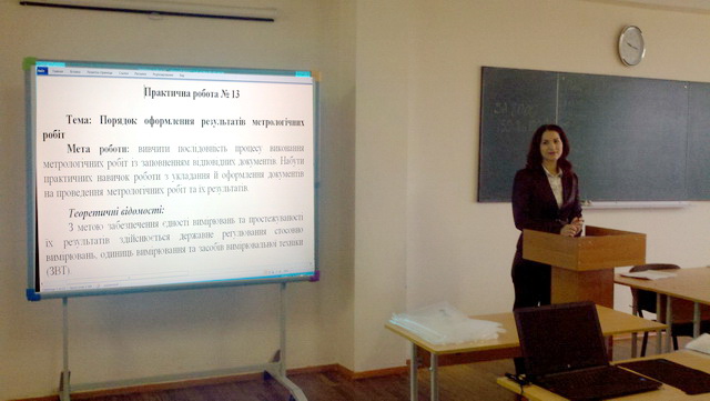 Ведучий викладач кафедри стандартизації та сертифікації с.-г. продукції к.т.н., доцент Наталя Мєдвєдєва, на початку заняття, нагадала студентам теоретичні відомості з порядку оформлення результатів метрологічних робіт, а саме те, що з метою забезпечення єдності вимірювань та простежуваності їх результатів здійснюється державне регулювання стосовно вимірювань, одиниць вимірювання та засобів вимірювальної техніки (ЗВТ).