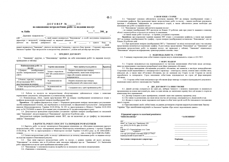2. Скласти договір на повірку засобів вимірювальної техніки згідно Ф.1.