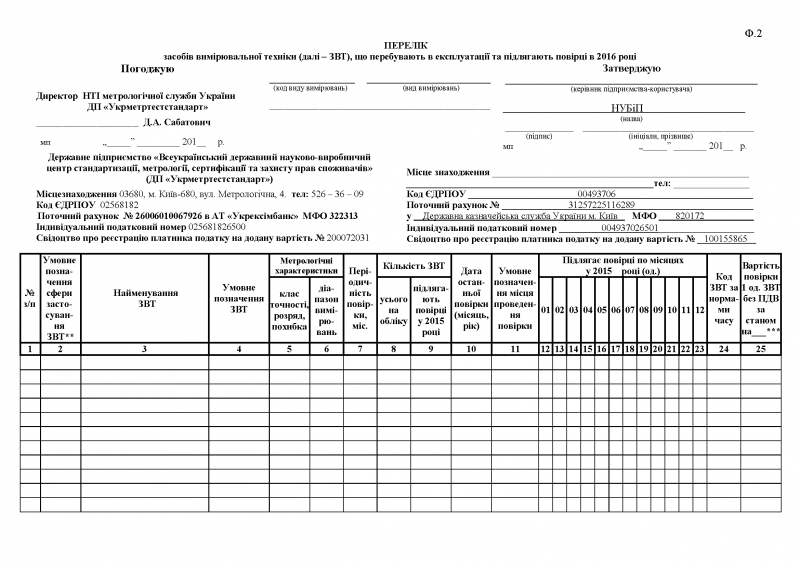 1. Скласти перелік засобів вимірювальної техніки на періодичну повірку, використовуючи форму Ф.2.