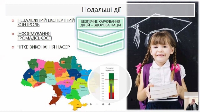 1. Розвиток інфраструктури в навчальних закладах, а саме впровадження в навчальних закладах (дошкільні заклади освіти, школи, ліцеї)системи безпечності харчових продуктів, яка заснована на принципах НАССР та впровадження ДСТУ ISO22000 «Система менеджменту безпечності харчових продуктів».