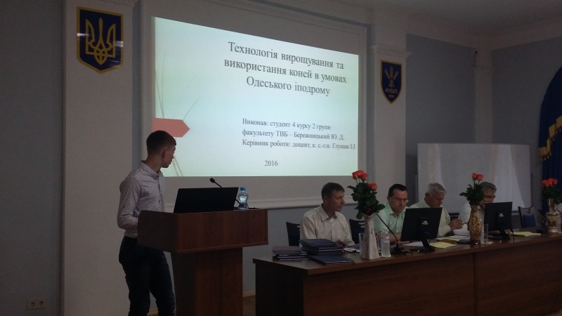 Тож студенти в оновлених аудиторіях 87 і 79 навчального корпусу № 1 демонстрували свої знання, здобуті у виші впродовж 4 років. Майбутні випускники за напрямом «Водні біоресурси та аквакультура» вирішували сьогодні оновлені екзаменаційні білети, які включали в себе як тестові завдання, так і відкриті питання, на які кожен давав усну відповідь перед усією аудиторією. За напрямом підготовки «Технологія виробництва та переробки продукції тваринництва» студенти прилюдно захищали свою випускну роботу, коротко висвітлюючи її у презентації та доповіді.