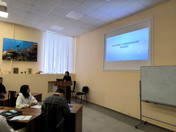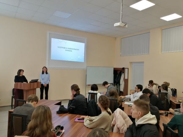Так, Марина Михайлівна прочитала студентам спеціальності «Водні біоресурси та аквакультура» лекцію на цікаву для всіх та актуальну тему: «Осетрові в аквакультурі України».