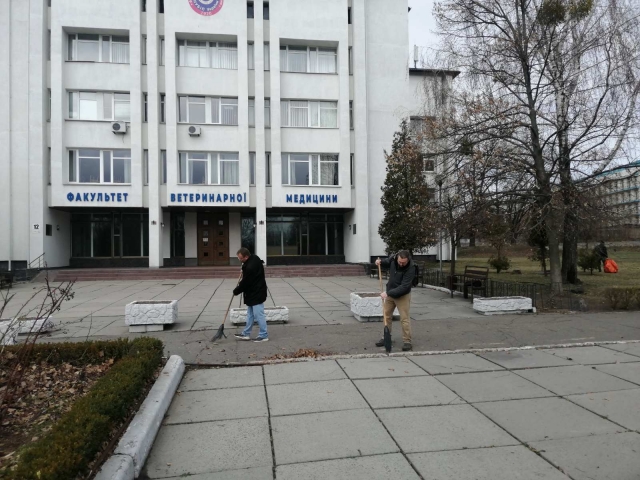 8 квітня, в прекрасний сонячний весняний день, співробітники факультету ветеринарної медицини на чолі з деканом Миколою Цвіліховським і заступником декана Сергієм Деркачем взяли учать у весняній толоці, яка в цей час проходила на території всього Університету.