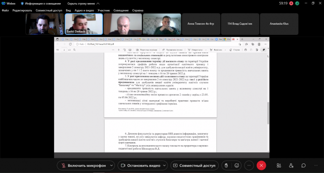 Заступник декана Сергій Деркач довів до відома студентів зміст наказу ректора університету від 18 березня 2022 р. № 160 «Про завершення другого семестр 2021-2022 н.р.».
