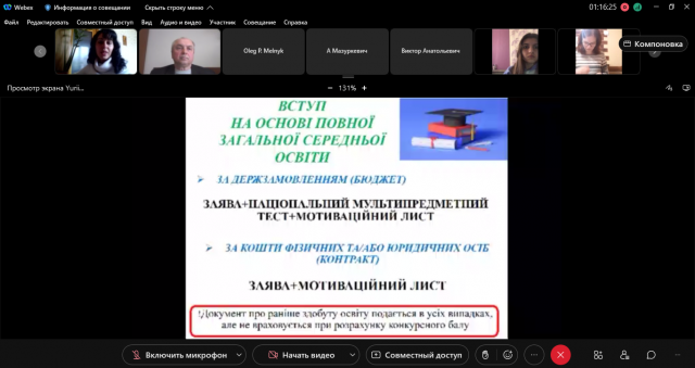 Секретар приймальної комісії Юлія Палиця ознайомила абітурієнтів з особливостями нинішньої вступної компанії. Вона детально зупинився на здачі мультимедійного тесту та мотиваційних листах, які необхідно подавати для вступу, термінах вступної компанії та місцях державного замовлення.