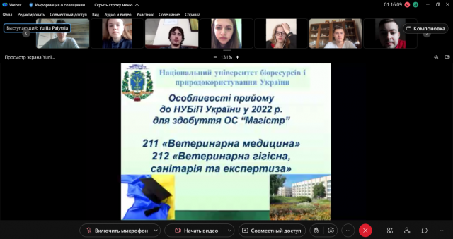 16 квітня 2022 року на факультеті ветеринарної медицини НУБіП України було проведено «День відкритий дверей» в режимі on-line з використанням платформи Webex. Незважаючи на перепони, у яких опинилися випускники загальноосвітніх шкіл, ліцеїв, гімназій, технікумів, коледжів, у воєнний час кожний із них стоїть перед вибором закладу вищої освіти, майбутньої професії, життєву дорогу в майбутнє.
