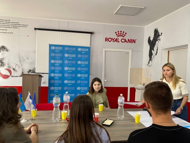 Здобувачі вищої освіти 5 курсу факультету ветеринарної медицини спеціальностей 211 "Ветеринарна медицина" та 212 "Ветеринарна гігієна, санітарія і експертиза" долучилися до участів заході, який був організований у рамках реалізації проекту програми ЄС ЕРАЗМУС+ Модуля Жана Монне "Інтеграція політики та засад Єдиного здоров’я ЄС в Україні" (101048229 - EU4OH -ERASMUS-JMO-2021-HEI-TCH-RSCH)у співпраці з ВООЗ України.