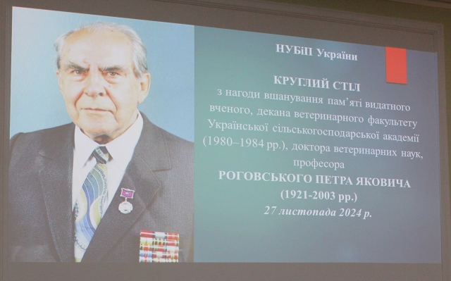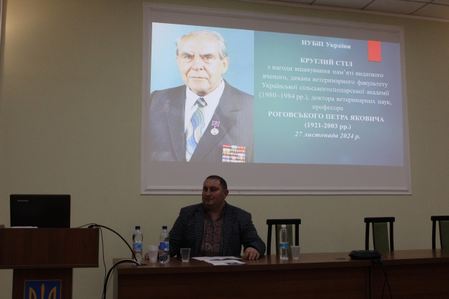 27 жовтня 2024 року в навчальному корпусі №12 НУБіП України відбувся круглий стіл, присвячений пам’яті одного з найяскравіших науковців у галузі ветеринарної медицини – професора Петра Яковича Роговського. Його внесок у розвиток науки, освіти та ветеринарної практики залишив глибокий слід не лише в Україні, а й за її межами.
