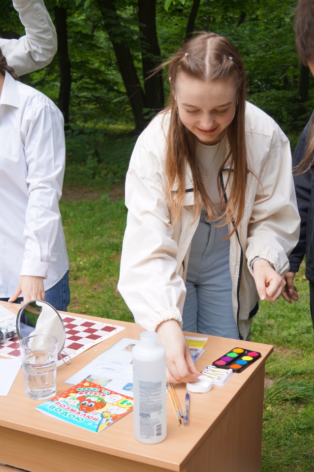 Представники студентської організації проводили хімічні експерименти, де було представлено 2 досліди. Перший «Фараонова змія» — це хімічна реакція, яка супроводжується утворенням пористого продукту з невеликого за бсягом речовин, що реагують. У підсумку виглядає так, ніби з суміші реагентів виповзає велика змія повзучи по столу, як справжня. Інший дослід — незвичне надування повітряних кульок, адже кулька із содою всередині просто натягується на пляшку оцту і сама надувається.