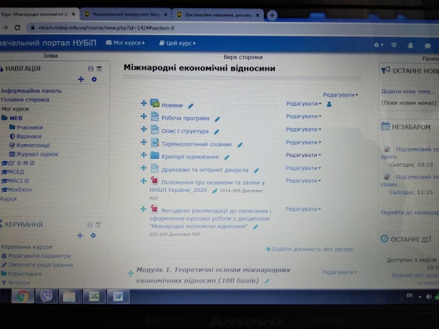 Екзамен з дисципліни розпочався в запланований час та у відповідності із затвердженим розкладом проведення заліково-екзаменаційної сесії на факультеті аграрного менеджменту. Дистанційна форма здачі екзамену відбувається через навчальний портал НУБіП України на платформі Е-learn.