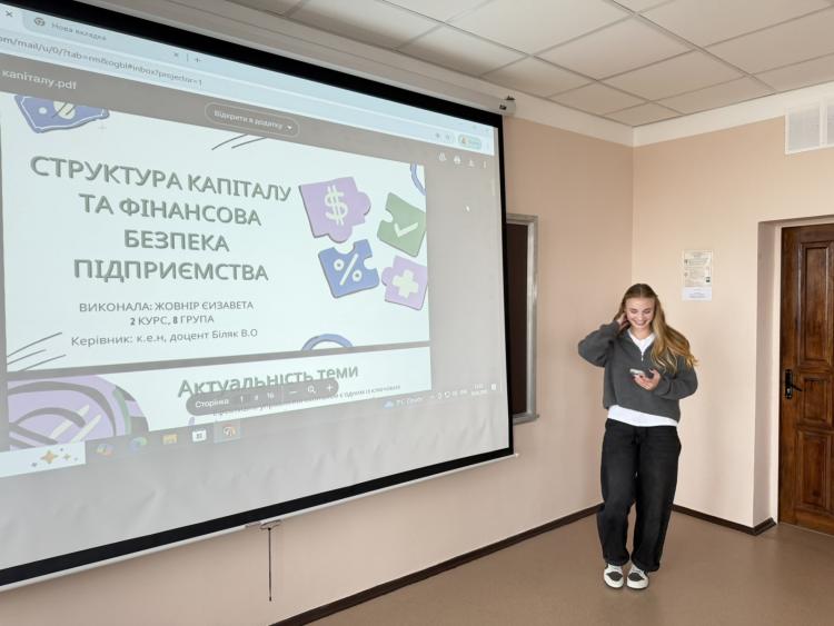 3 місце отримала студентка студентка 2 курсу ОП «Корпоративні фінанси» Єлизавета ЖОВНІР з темою наукової роботи «Структура капіталу та фінансова безпека підприємства», науковий керівник к.е.н., доцент Юлія БІЛЯК.
