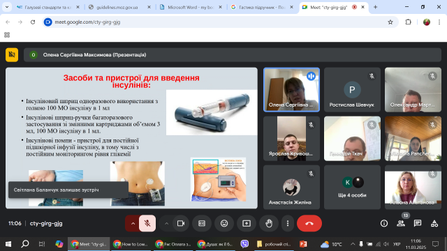 Викладач детально розповіла про етіологію та епідеміологію цукрового діабету 1 та 2 типу; надала класифікацію за ступенем важкості, увага судентів була акцентована на патофізіології окремих типів цукрового діабету, їх ускладненнях. Обговорена симптоматика, діагностика та лікування цукрового діабету.