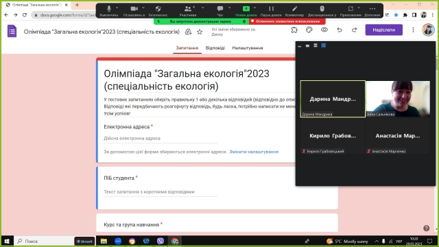 На кафедрі загальної екології, радіобіології та безпеки життєдіяльності успішно пройшов І етап предметних студентських олімпіад