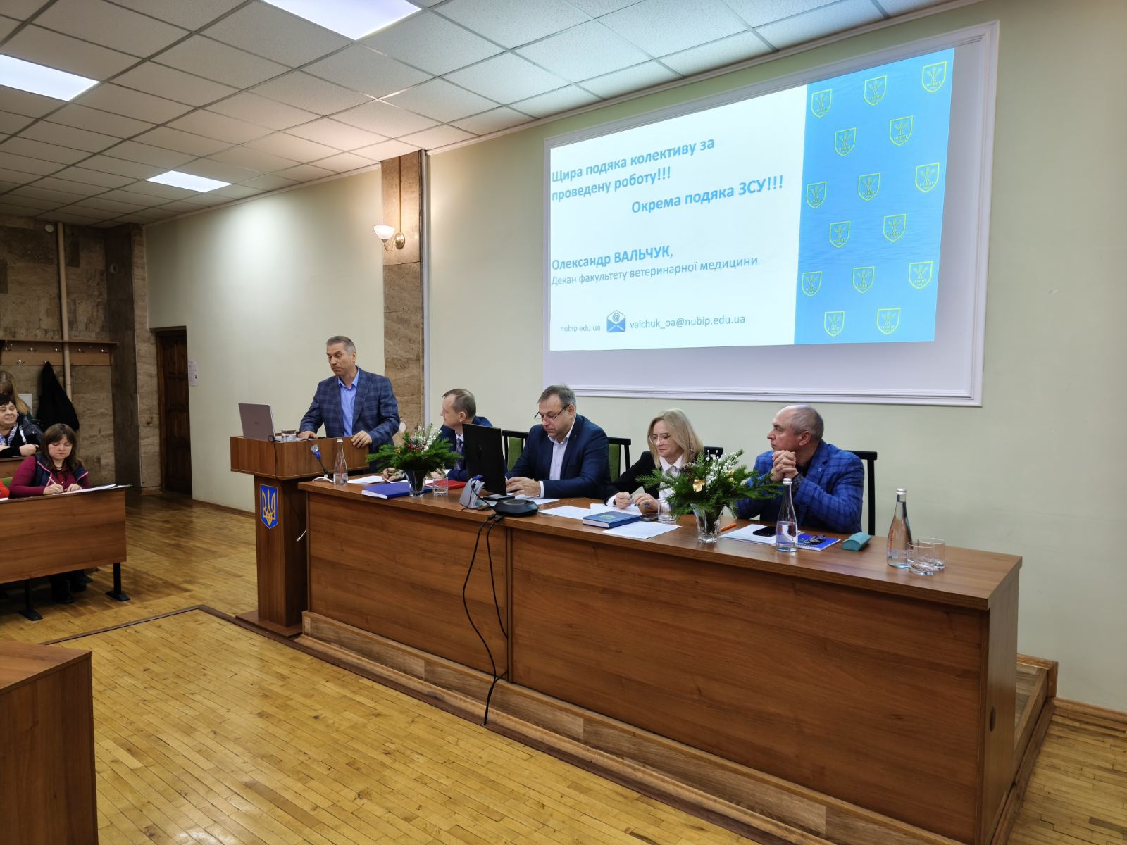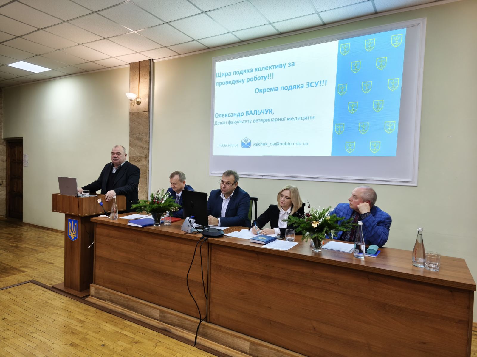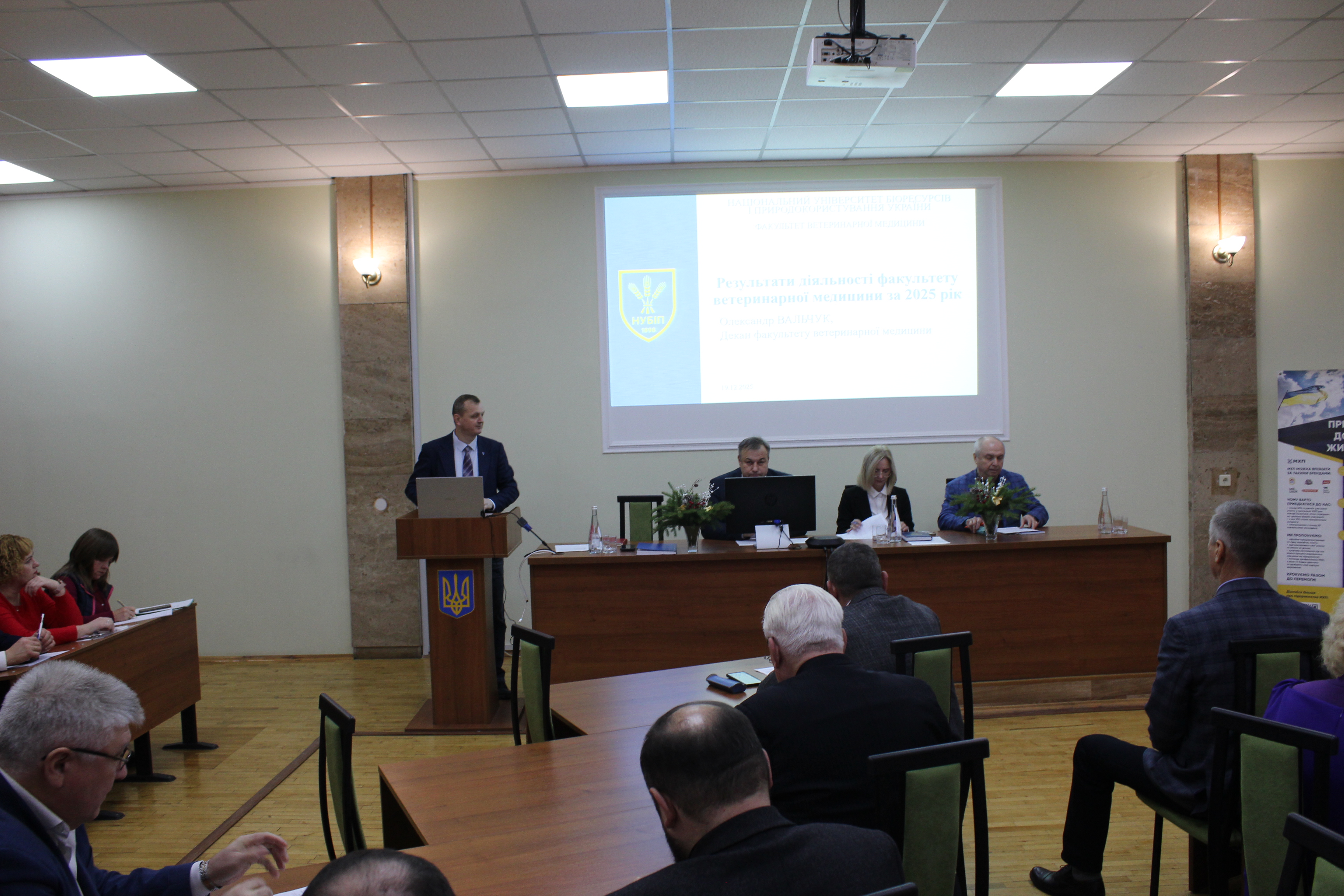19 грудня 2025 року відбулись збори трудового колективу, на яких декан факультету Олександр ВАЛЬЧУК презентував звіт «Про результати діяльності факультету ветеринарної медицини в 2025 році та завдання на 2026 рік».