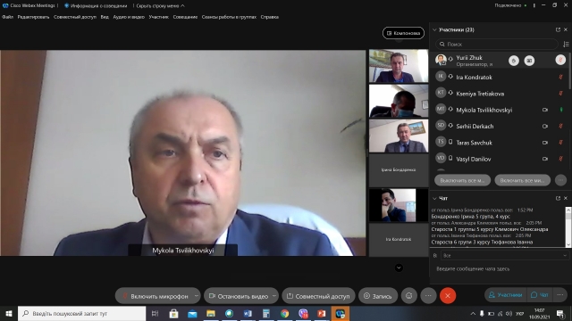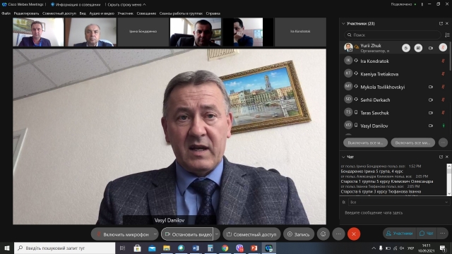 Заступник декана Василь Данілов у своєму виступі зосередив увагу старост на графік навчального процесу, проаналізував результати літньої заліково-екзаменаційної сесії, і зазначив, що не дивлячись на те, що вони знаходяться на дистанційному навчанні – відвідування лекцій і своєчасне виконання і здача лабораторних занять на навчальній платформі elearn є обов’язковими.