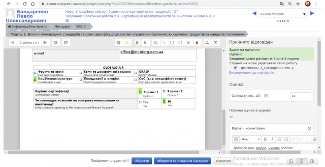 НА ПОРЯДКУ ДЕННОМУ ДИСТАНЦІЙНІ ПРАКТИЧНІ ЗАНЯТТЯ З ДИСЦИПЛІНИ «УПРАВЛІННЯ ЯКІСТЮ ТА БЕЗПЕЧНІСТЮ СІЛЬСЬКОГОСПОДАРСЬКОЇ ТА ХАРЧОВОЇ ПРОДУКЦІЇ»: ОПАНОВУЄМО СЕРТИФІКАЦІЮ ЗГІДНО ВИМОГ GLOBALG.A.P.