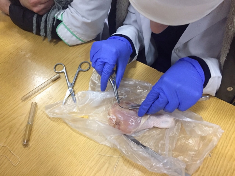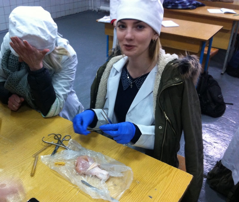 Тому, студентам 3 курсу 5 групи підчас практичного заняття під керівництвом Т. Сачука і завідувача кафедри хірургії і патофізіології ім. акад. І.О. Поваженка М.О. Малюка було опрацьовано на препаратах (курячих гомілках) методики хірургічної обробки ран і гематом.