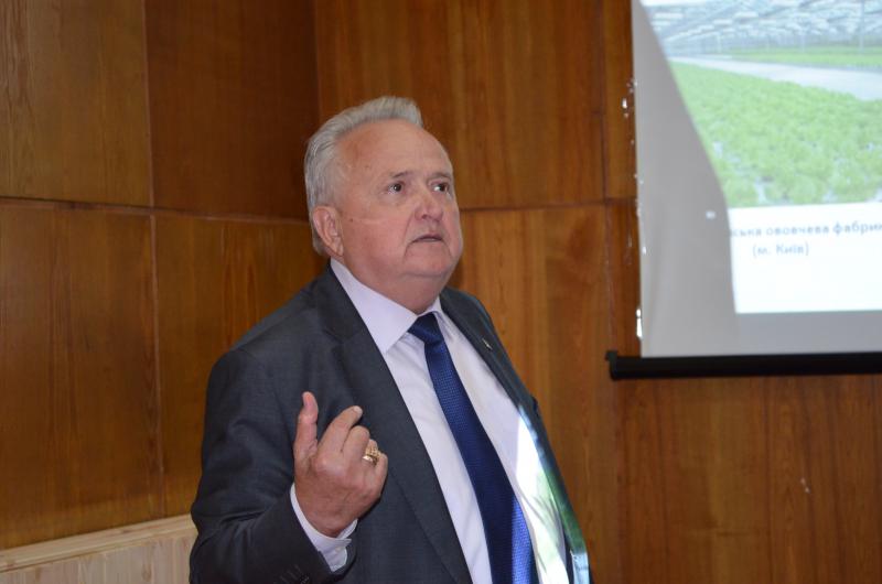 Завідувач кафедри закритого ґрунту, професор Приліпка О.В. підкреслив високу потребу в підготовці фахівців агрономічних спеціальностей для галузі рослинництва закритого ґрунту, продемонстрував різнопланову роботу кафедри, озвучив головні завдання й зрушення в навчально-методичній і науково-дослідній діяльності.