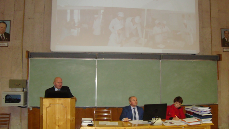 Доповідач на високому рівні представив життєдіяльність та здобутки кафедри. Було презентовано інформацію про кадровий потенціал, який нині становить 6 науково-педагогічних працівників з науковими ступенями: 1 доктор наук, професор та 5 кандидатів наук, з яких 3 доценти та 2 старші викладачі. Допоміжний персонал складається з 2-х осіб: старшого лаборанта та лаборанта. Середній вік НПП кафедри – 44 роки.