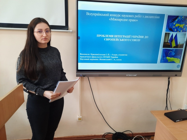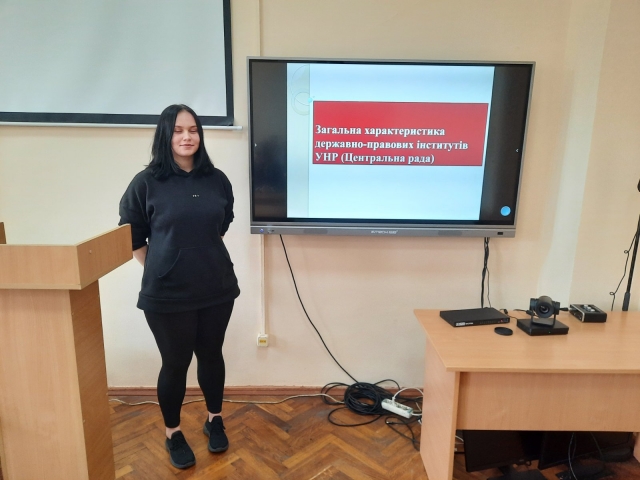 5) студентка 1 курсу Юськова Каріна Єгорівна з науковою роботою на тему: «Загальна характеристика державно-правових інститутів УНР (Центральна Рада)». Студентський науковий гурток «Історико-правничі студії» (науковий керівник – Ірина Єрмоленко) - 75 балів.