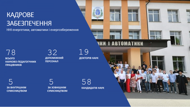 Кадровий потенціал інституту сьогодні формують 6 кафедр, з яких 4 є випусковими. Аналіз кадрового складу показує його достатню збалансованість за спеціальностями для забезпечення ліцензійної освітньої діяльності. Освітня концепція Інституту полягає в підготовці нового покоління фахівців інженерів в галузі енергетики, електрифікації та автоматизації на базі сучасних стандартів освіти, адаптованих до вимог кращих світових освітніх програм, для роботи в державному та недержавному секторах економіки.