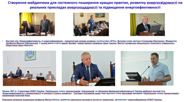 Окремою, але відповідальною і вагомою сферою діяльності фахівців інституту є науковий та практичний супровід управління енергозабезпеченням для зменшення видатків бюджету університету на комунальні платежі. Наразі до технічної ради з енергозбереження поданий розроблений в інституті проєкт Комплексної науково-технічної програми управління енергоефективністю в НУБіП України на 2021-2025 роки та план заходів до неї на 2022 рік.
