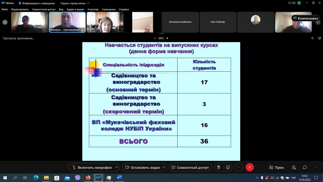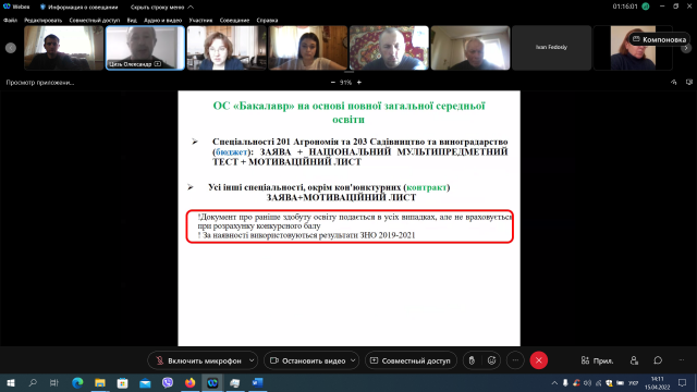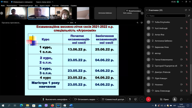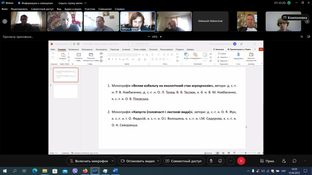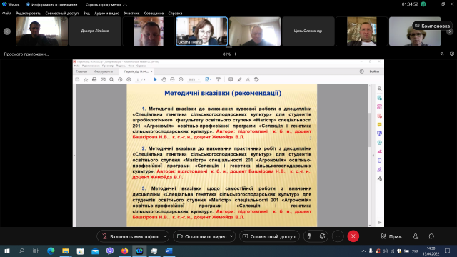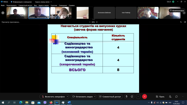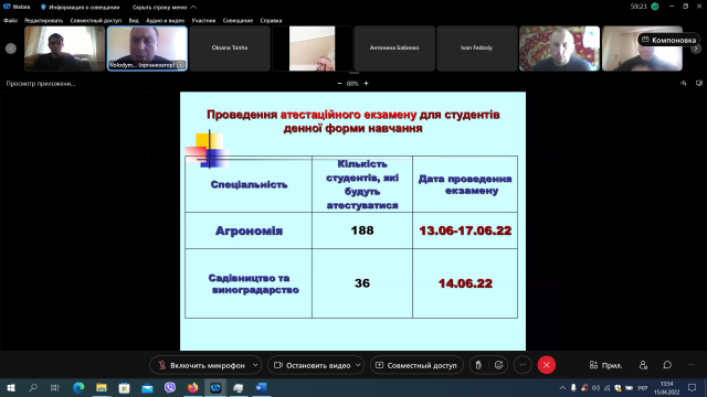 15 квітня відбулося онлайн-засідання вченої ради агробіологічного факультету. Відкрила засідання Оксана Тонха – декан агробіологічного факультету.