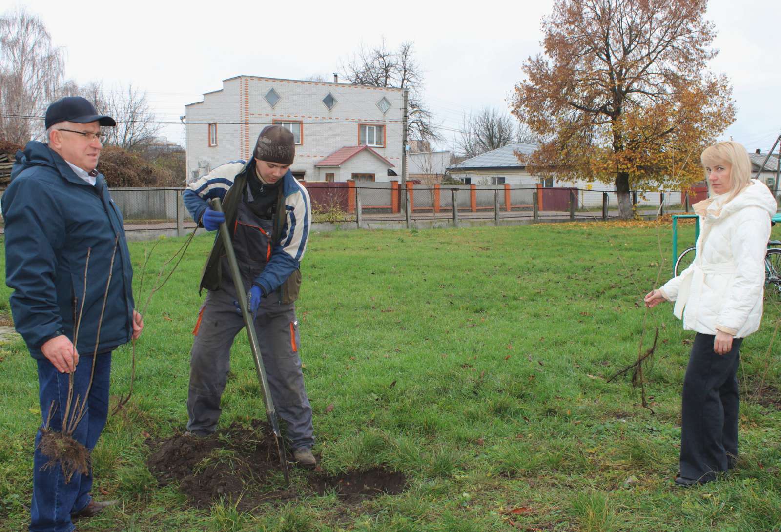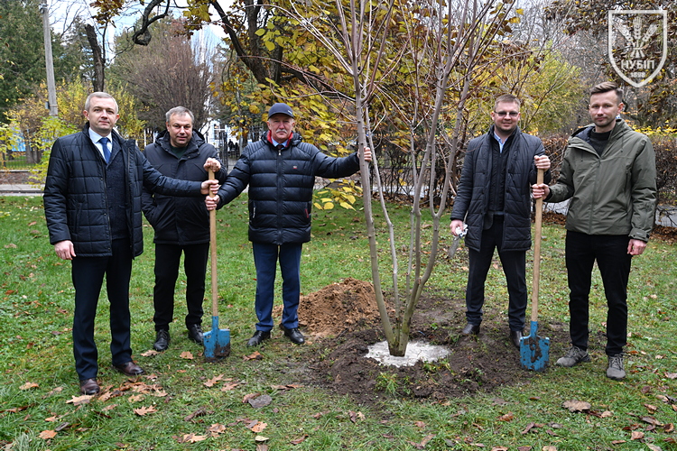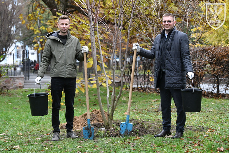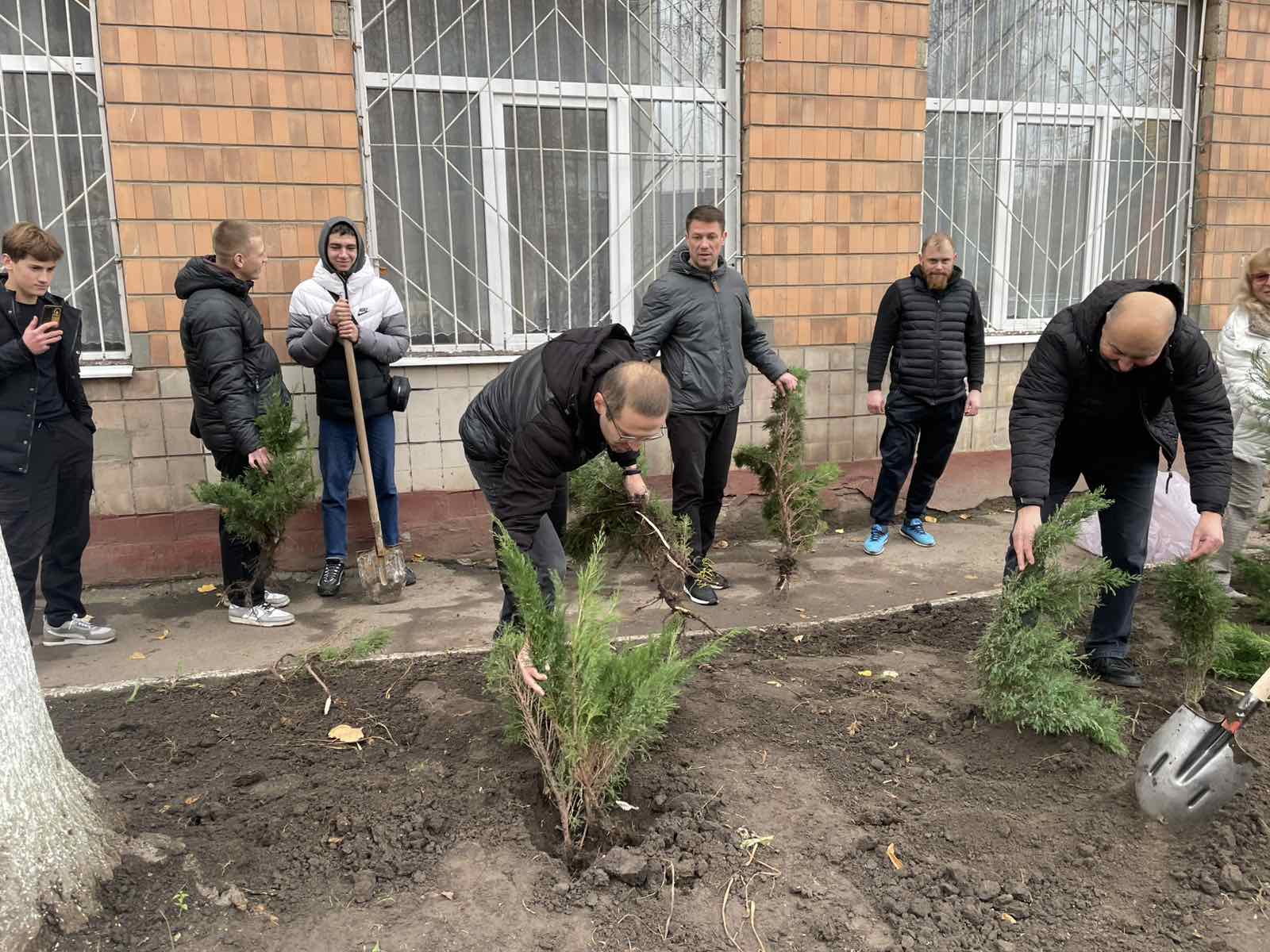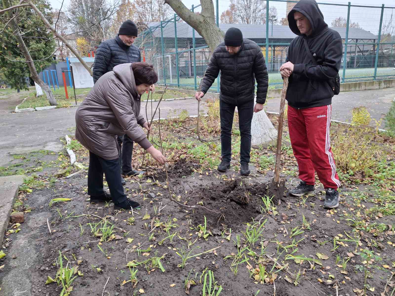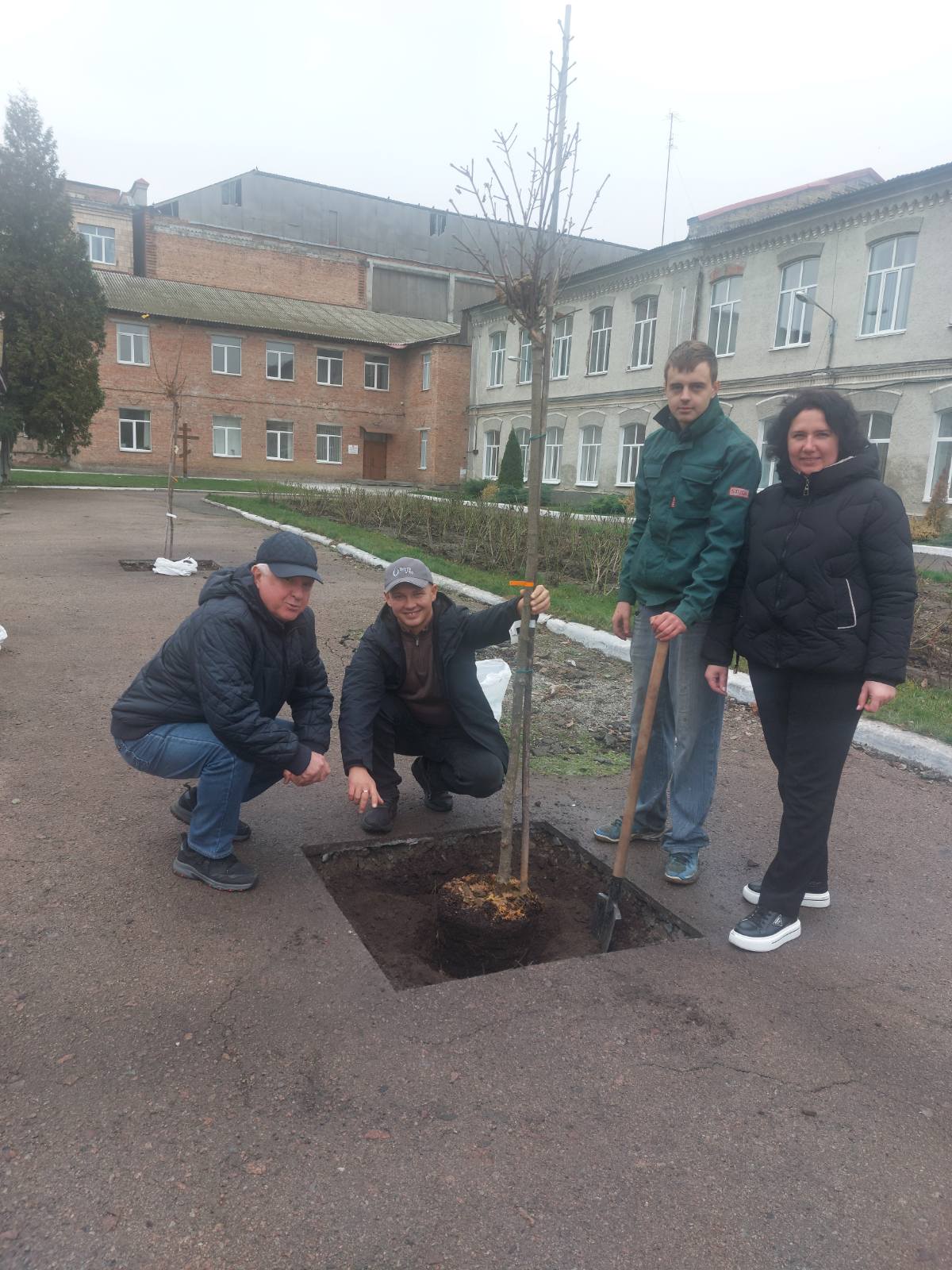 У Ніжинському агротехнічному інституті директор Василь ЛУКАЧ разом з викладачами та студентами в надскладних безпекових умовах також висадили дерева на території.