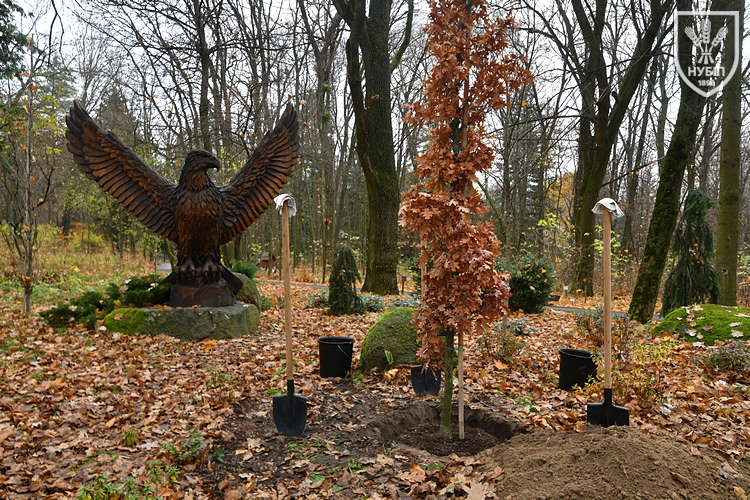 Цього разу у ботсаду висаджено колоновидні форми дуба, кипарисовик горіхоплідний, біля храму на Меморіалі пам’яті клен червоний, який щоосені палатиме яскравим факелом у пам’ять тих, хто загинув, захищаючи Україну, коментує цей вибір завідувач кафедри ботаніки, дендрології та лісової селекції Юрій МАРЧУК. Для поповнення колекції ботсаду завезли і 3 види сосни, одна з яких — балканська — росте до тисячі років. Весь цей садивний матеріал знову (і вкотре!) університету передав розсадник «Єва».