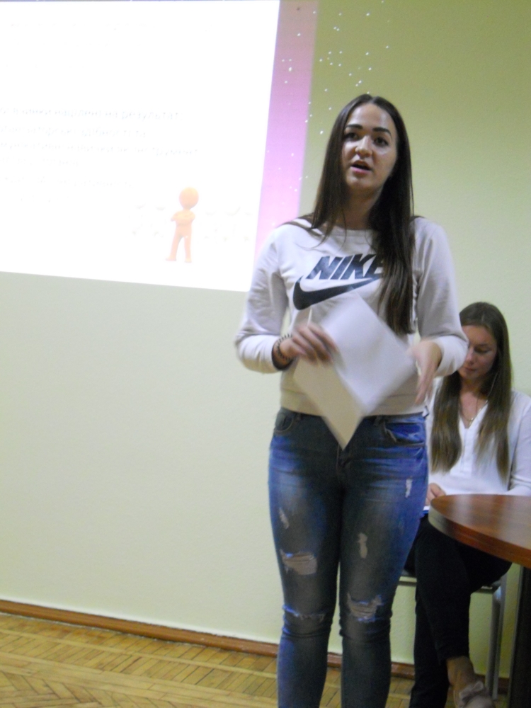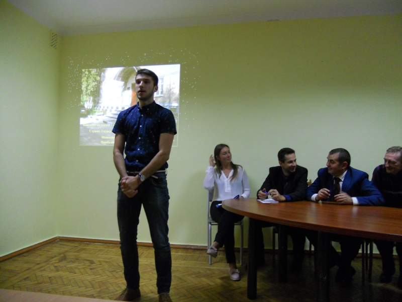 Першою виступила студентка гуманітарно-педагогічного факультету Вікторія Мацола, яка представила свою програму розвитку студентського самоврядування в гуртожитку та розказала про свої плани, які збирається реалізувати.