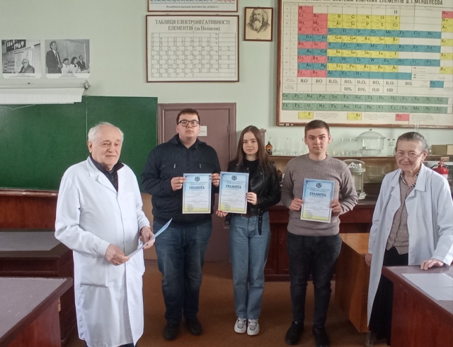 Переможців олімпіади нагороджено грамотами за підписом ректора університету професора Станіслава Ніколаєнка, який в свій час вивчав хімію у 48 лабораторії 2 навчального корпусу і нині є двічі академіком.