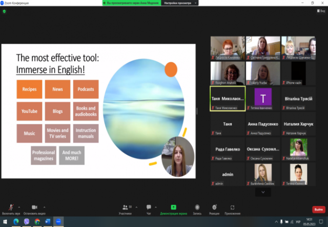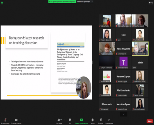 У фокусі уваги учасників вебінару були інноваційні методики навчання англійської мови. Сьогодні перевага надається тим технологіям, які об’єднують комунікативні та пізнавальні цілі. Дослідники наголошують, що впровадження науково обґрунтованого підходу у практику викладання здатне значно підвищити ефективність навчального процесу.