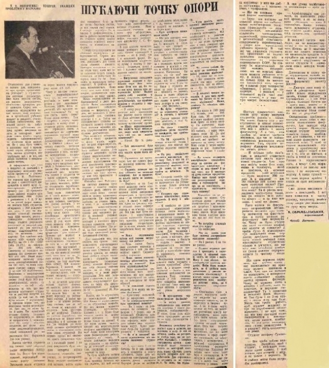 Гортаючи сторінки цієї ж газети натрапляємо на статтю «Шукаючи точку опори (Т.П. Різниченко: пошуки, знахідки, проблеми у навчанні)», в якій кореспондент В. Обрамбальський детально проаналізував зустріч представників ректорату зі студентським активом академічних груп: «Вже один перелік питань, які малися розглядати, викликав цілий резонанс серед студентів. Серед них – концепція відродження вищої школи; нові положення в організації учбового процесу в академії; стипендіальне забезпечення, соціальний захист та побут студентів; рейтингова система оцінки; введення оплати за повторний контроль знань (тобто перескладання заборгованостей) та додаткові види навчання».