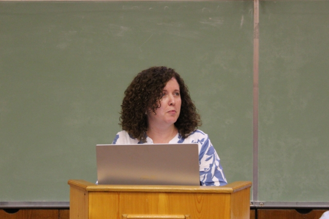 Директор бібліотеки Тетяна Кіщак представила інформаційні ресурси наукової бібліотеки та зупинилася на питаннях академічної доброчесності.