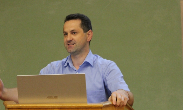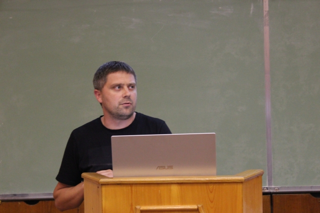 Відповідальний на факультеті за впровадження інформаційно-комунікаційних технологій Юрій Харкевич у своєму виступі ознайомив студентів з принципами організації дистанційного навчання за допомогою платформи elearn.nubip.edu.ua. Наголосив на тому, як потрібно діяти у випадку виникнення тих чи інших проблем під час реєстрації на порталі чи зарахуванні на електронні навчальні курси.