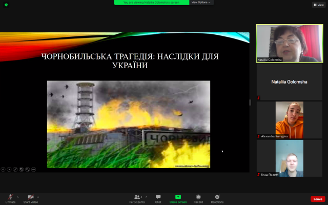 26 квітня 2021 року куратором групи МЗЕД (магістри першого року навчання) Наталією Голомша в режимі онлайн була проведена бесіда, присвячена 35-річниці аварії на Чорнобильській АЕС «Чорнобильська трагедія: наслідки для України» зі студентами групи.