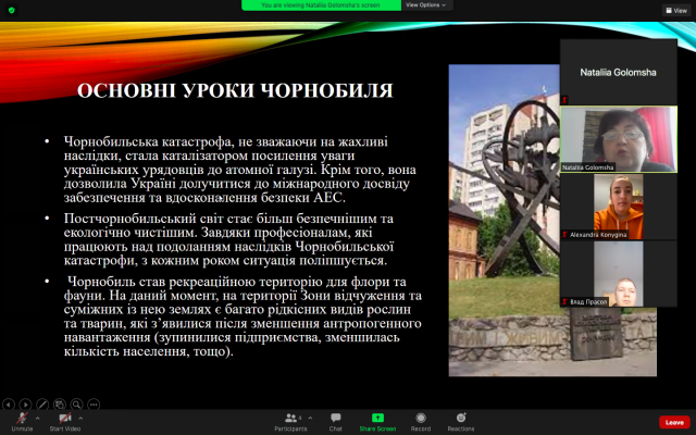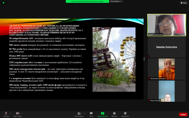 Наставником групи МЗЕД (магістри першого року навчання) проведено онлайн – бесіду «Чорнобильська трагедія: наслідки для України»