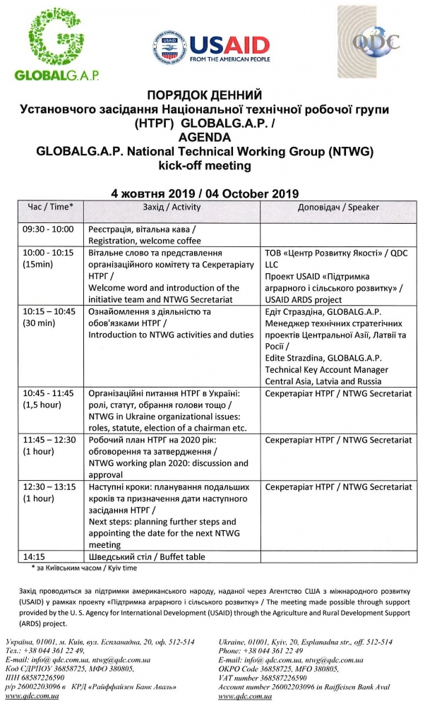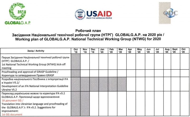 На останок членами НТРГ GLOBALG.A.P. в Україні затверджене Технічне завдання з основними напрямками діяльності і обов’язками, процесами прийняття рішень тощо.