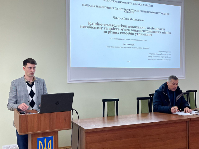 Новий календарний рік члени наукової ради НДІ здоров’я тварин розпочали з розгляду результатів дисертації здобувача наукового ступеня доктора філософії Івана Чеверди на тему: «Клініко-гематологічні показники, особливості метаболізму та якість м’яса гонадоектомованих півнів за різних термінів вирощування», науковий керівник - доктор біологічних наук, професор, член-кореспондент НААН України Захаренко Микола Олександрович.
