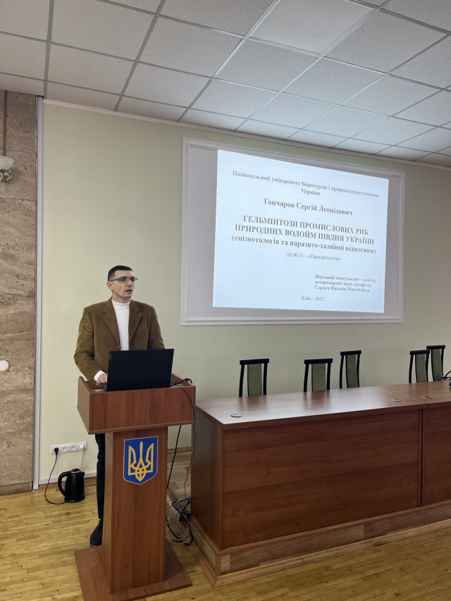 26 грудня 2022 р. у конференц-залі 12 корпусу відбулося засідання наукової ради НДІ здоров’я тварин на якому було розглянуто наукові результати дисертації здобувача наукового ступеня доктора ветеринарних наук за спеціальністю 16.00.11 «Паразитологія» Сергія Гончарова на тему: «Гельмінтози промислових риб природних водойм півдня України (епізоотологія та паразито-хязяїнні відносини)», науковим консультантом якого є Наталія Сорока, доктор ветеринарних наук, професор, професор кафедри фармакології, паразитології, і тропічної ветеринарії НУБіП України.