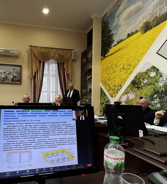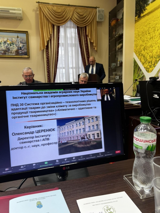Також пролунала доповідь від очільника Інституту свинарства і агропромислового виробництва НААН з виконання ПНД 30 «Система організаційно – технологічних рішень з адаптації тварин до зміни клімату за виробництва продукції тваринництва». Традиційно, рецензентом від Національного університету біоресурсів і природокористування України виступив завідувач кафедри технологій у птахівництві, свинарстві та вівчарстві, доктор с.-г. наук, професор Вадим Лихач. У виконанні завдань ПНД 30 «Кліматично – адаптивне та органічне тваринництво» в 2023 році приймали участь, разом з Інститутом свинарства і АПВ НААН, 4 установ-співвиконавців. Загалом виконувалось 14 завдань другого рівня, з яких 2 фундаментальних, 9 прикладних, 3 прикладних короткотермінових. На основі отриманих результатів зроблено висновок, що фактичне виконання представленого звіту відповідає технічному завданню на виконання науково-дослідних робіт. За результатами досліджень опубліковано вагомий науковий доробок та низку науково-практичних рекомендацій.