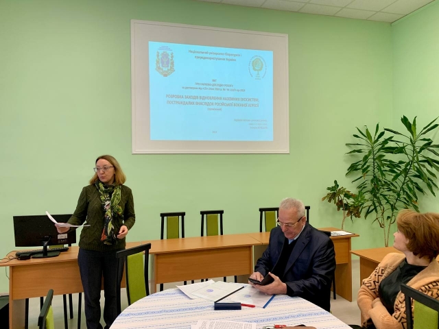 У рамках виконання НДР «Розробка заходів відновлення наземних екосистем, постраждалих внаслідок російської воєнної агресії», керівник якого канд. с.-г. наук Валерія Бондарь, проведено збір та узагальнення інформації щодо екологічного стану природних екосистем на території Бучанської громади Київської області за період до початку та після повномасштабного вторгнення. На базі експедиційних досліджень з відбором та аналізом зразків ґрунту, води, рослинності, визначенням радіаційного фону повітря і ґрунту здійснено порівняльний аналіз отриманих результатів з даними польових досліджень, що проводилися у довоєнний період. За результатами роботи визначено тенденції зміни екологічного стану досліджуваних територій та особливості екологічних порушень, що виникли внаслідок воєнної агресії. Це дало змогу обґрунтувати комплекс показників екологічних порушень локального рівня та методів їх оцінювання. До ключових показників віднесено прояви механічного і фізичного видів деградації ґрунтів мілітарного типу, вміст важких металів у ґрунті, зміни якості води й накопичення токсичних речовин в гідроекосистемах, зміни у видовому різноманітті рослинності. Проведені дослідження дали змогу сформувати попередні рекомендації щодо першочергових дій по відновленню порушених внаслідок воєнних дій екосистем області.
