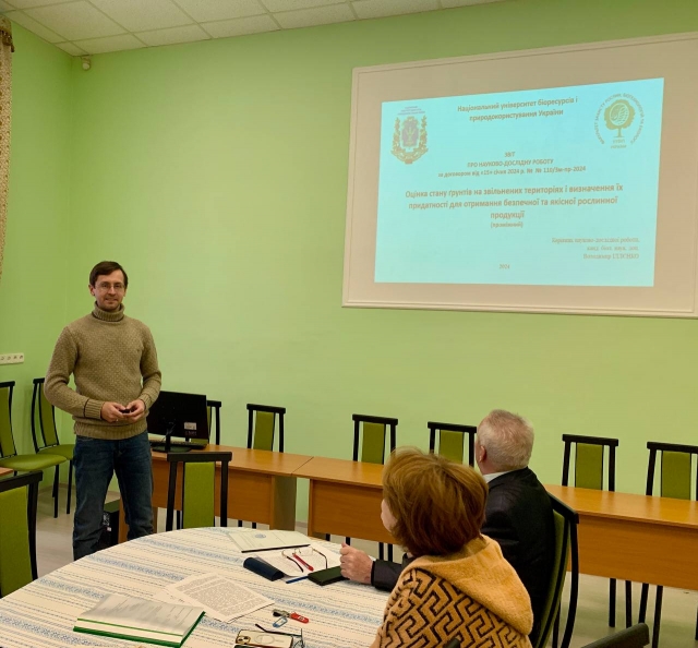 Науковий керівник НДР «Оцінка стану ґрунтів на звільнених територіях і визначення їх придатності для отримання безпечної та якісної рослинної продукції»канд. біол. наук Володимир Іллєнко зазначив, що у межах Київської та Чернігівської областей виявлено та обстежено близько 150 га сільськогосподарських угідь, які зазнали впливу воєнних дій, зокрема через влучання авіабомб, горіння військової техніки, артилерійські обстріли. Встановлено, що щільність забруднення ґрунту 137Cs коливається в межах від 2,07 до 8,20 кБк/м2, в той же час щільність забруднення ґрунту 90Sr – від 0,37 до 3,49 кБк/м2, що згідно вимог Закону України не перевищує меж встановлених для категорій зон радіоактивного забруднення (для 137Cs від 185 кБк/м2, для 90Sr від 5,55 кБк/м2). Враховуючи рівні радіоактивного забруднення ґрунту досліджуваних територій та значення коефіцієнтів переходу в с/г рослини, перевищень допустимих рівнів для сільськогосподарської продукції за радіологічними показниками не прогнозується.