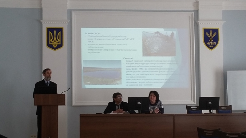 В. Коваленко, доцент кафедри аквакультури, канд.с.-г.наук удоповіді на тему: «Підготовка спеціалістів для аквакультури: сучасні вимоги і шляхи реалізації», акцентував увагу щодо якісної підготовки спеціалістів для рибної галузі з урахуванням сучасних вимог виробництва як важливе завдання для науково-педагогічного колективу НУБіП України і найбільш переконлива форма підтвердження статусу університету, як провідного закладу з підготовки висококваліфікованих кадрів з вищою освітою для агропромислового комплексу нашої країни.