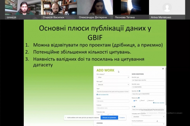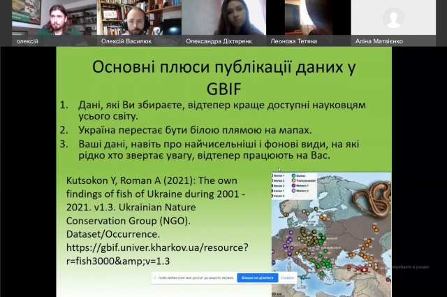 Дедалі більше учбових закладів світу починають використовувати принципи відкритих даних про біорізноманіття в роботі біологічних факультетів. Учасники проведеного вебінару дізналися про сучасні методу збору та публікації даних щодо поширення організмів, а також про модулі, що дозволяють завантажувати зібрану інформацію у бази даних INaturalist й GBIF. Ці модулі є корисними студентам під час роботи на польових практиках чи в лабораторіях з матеріалом, для якого відоме походження, дають змогу оперативно фіксувати його метадані й викладати їх у відкритому доступі в базах даних INaturalist й GBIF. Ще однією беззаперечною перевагою роботи з модулем INaturalist, на відміну від традиційних методів проведення польових практик в університетах є те, що ця система автоматично документує як об'єкти спостережень, так і місце перебування студента й маршрут його пересування. З іншого боку, дані зібрані під час роботи як викладачів, так і студентів можуть бути опублікованими у відкритому доступі, бути корисними іншим науковцям і, врешті, мати реальні цитування (для прикладу, база гербарних фондів Херсонського державного університету має вже 28 цитувань у зарубіжних наукових виданнях упродовж кількох місяців роботи).