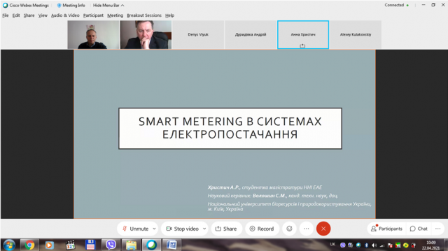 З науковими доповідями, присвяченими актуальним питанням розвитку електроенергетичної галузі України, виступили студенти ННІ енергетики, автоматики і енергозбереження НУБіП України: Христич А., Бабак Т., Дуридівка В., Голота А., Віюк Д., Ткаченко В., Кулаковський О., Тимчик Д., Голоюх Б., Салганенко В.
