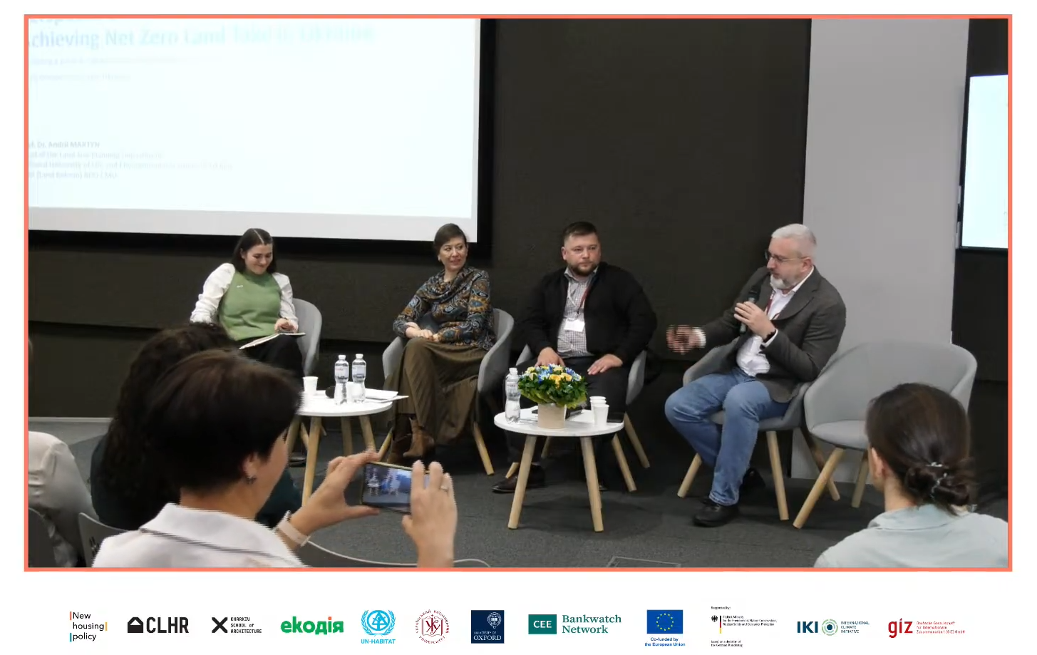 Професор Андрій МАРТИН сфокусував увагу на економічних інструментах, що дозволяють поєднати швидкість і якість відбудови з охороною земель. Йшлося про механізми запобігання додатковому вилученню земель під забудову, про фінансові та регуляторні важелі, які стимулюють ущільнення і реновацію замість розростання територій, а також про моделі ціноутворення, що враховують екологічні витрати. Запропоновані підходи формують практичну основу для досягнення цілі «нульового додаткового вилучення земель», знижують тиск на агроландшафти та відкривають шлях до збалансованого просторового розвитку громад.