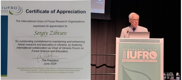 Під час відкриття сесії Президент IUFRO Джон Парротта (Dr. John Parrotta) нагородив професора Сергія Зібцева за його видатну відданість підтримці та розвитку лісових досліджень та освіти в Україні шляхом сприяння міжнародному співробітництву на посаді Голови Українського форуму з лісової науки та освіти.