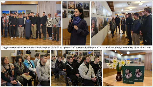 Під час викладання дисципліни «Етнокультурологія» науково-педагогічні працівники кафедри культурології пропонують своїм студентам різноманітні форми роботи, щоб краще опановування тем проходило цікавіше. Так, при вивченні питань, пов’язаних з українським народним та професійним образотворчим та декоративно-вжитковим мистецтвом найкращим вважають наживо побачити мистецькі витвори та обговорити їх, при вивченні сучасного українського літературного процесу - поспілкуватися з письменниками. Майбутнім автомобілістам (студентам 1 курсу механіко-технологічного факультету спеціальності «Автомобільний транспорт»), які вже склади іспит з етнокультурології, надовго запам'яталася участь у презентації роману Лілії Черен «Тінь за тобою» у Національному музеї літератури, у якій вони взяли участь разом зі своїми викладачками етнокультурології Яриною Пузиренко та Наталією Головатою. Це твір з незвичайним і несподіваним сюжетом на історичному тлі Києва 1920-х років, за жанром – історико-містична драма з елементами детективу. Приємно, що сама авторка розповіла про творчий задум, роботу над твором І, що важливо, – спонукала студентів на своєму прикладі активно працювати для втілення своєї мети.