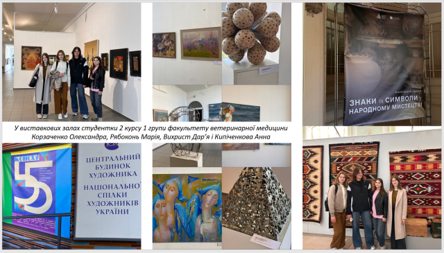 А спільно зі студентами факультету ветеринарної медицини побували студенти і на масштабній ювілейній виставці у Центральному будинку художника на Львівській площі «Київська організація НСХУ. 55 років». Експозиція охопила творчість кількох поколінь митців, які представляють різні напрями — живопис, графіку, скульптуру, декоративно-ужиткове та монументальне мистецтво. Студенти побачили роботи як визнаних майстрів, так і молодих авторів, що продовжують традиції українського професійного мистецтва. Виставка демонструє розвиток художніх тенденцій у столиці та відображає внесок Київської організації НСХУ у формування національного культурного простору.